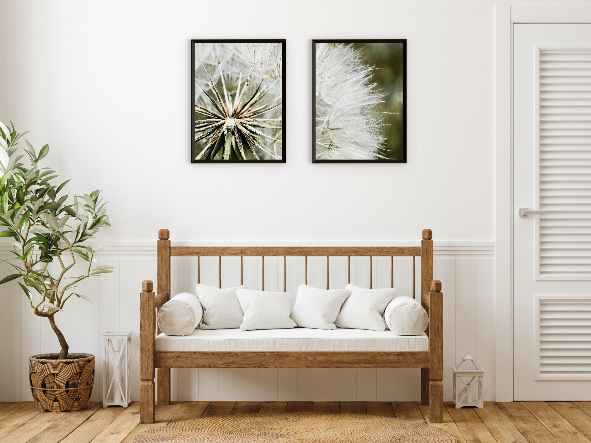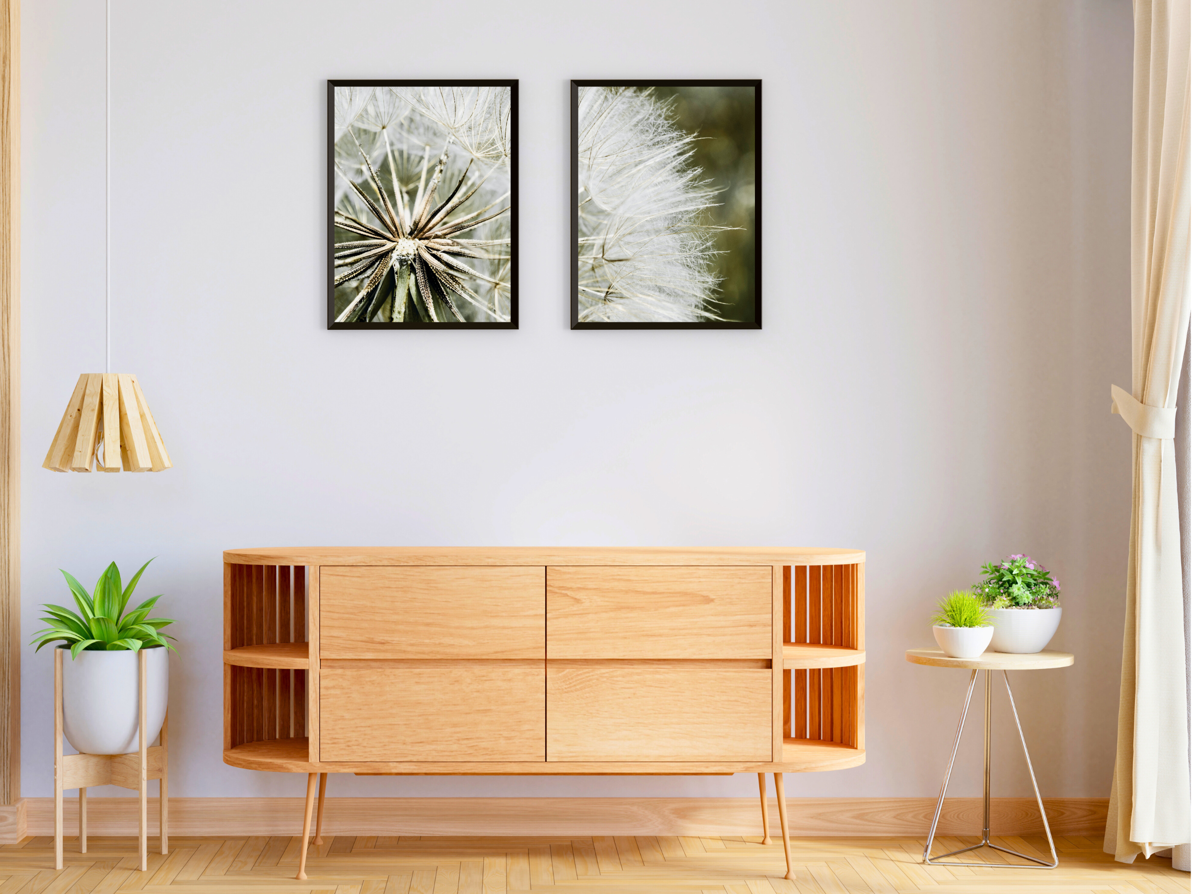 Dandelion Split Photography – 2-piece printable wall art featuring a dandelion in focus. Ideal for a delicate, nature-inspired wall decoration in your home.