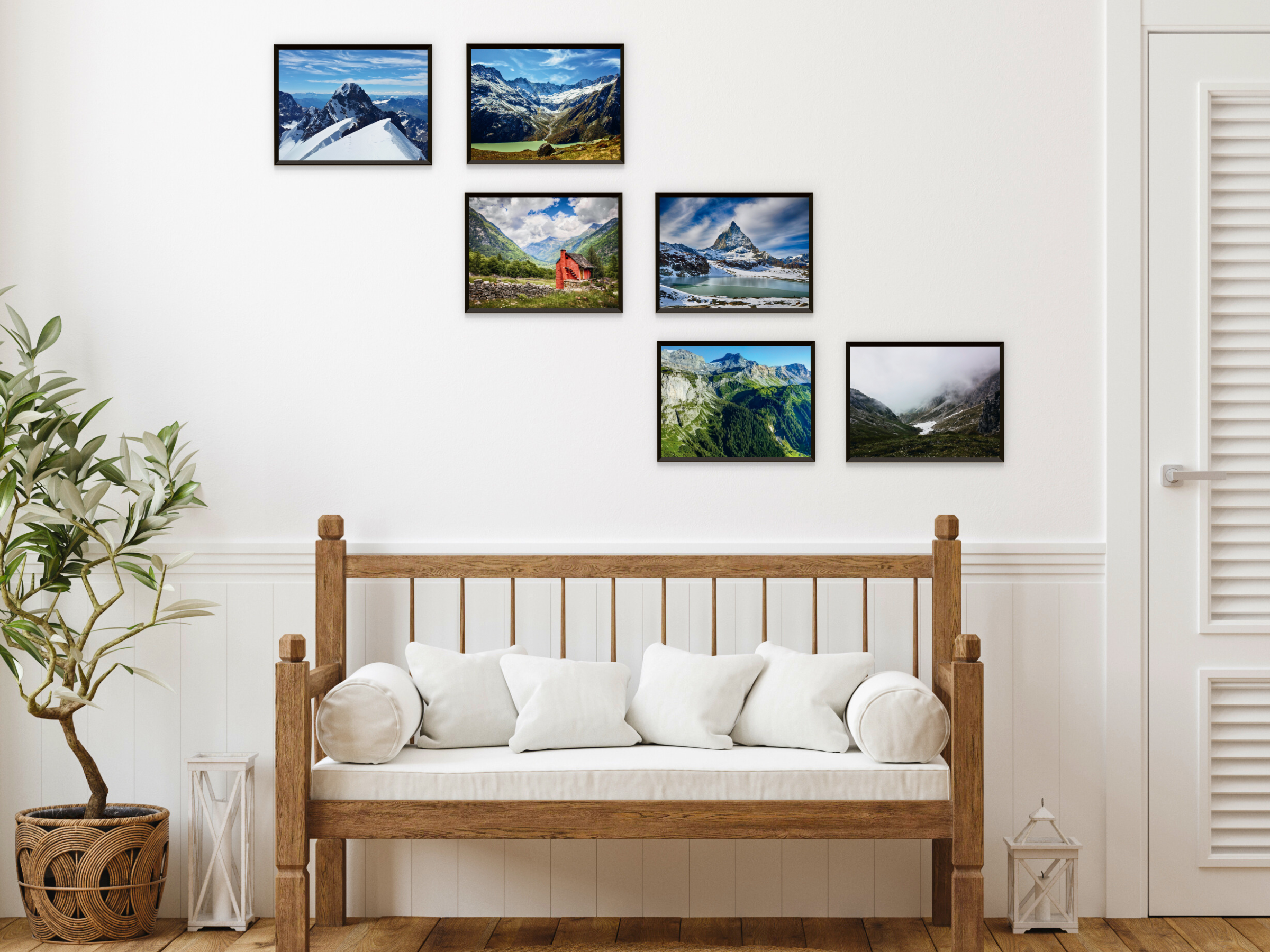 Photographies de nature alpine (lot) – Décoration murale numérique 4x9 pièces Forêts hivernales, forêts de conifères, paysages de montagne et nature luxuriante : illustrations de nature et de paysages à imprimer , téléchargeables instantanément pour personnaliser la décoration de votre chambre.