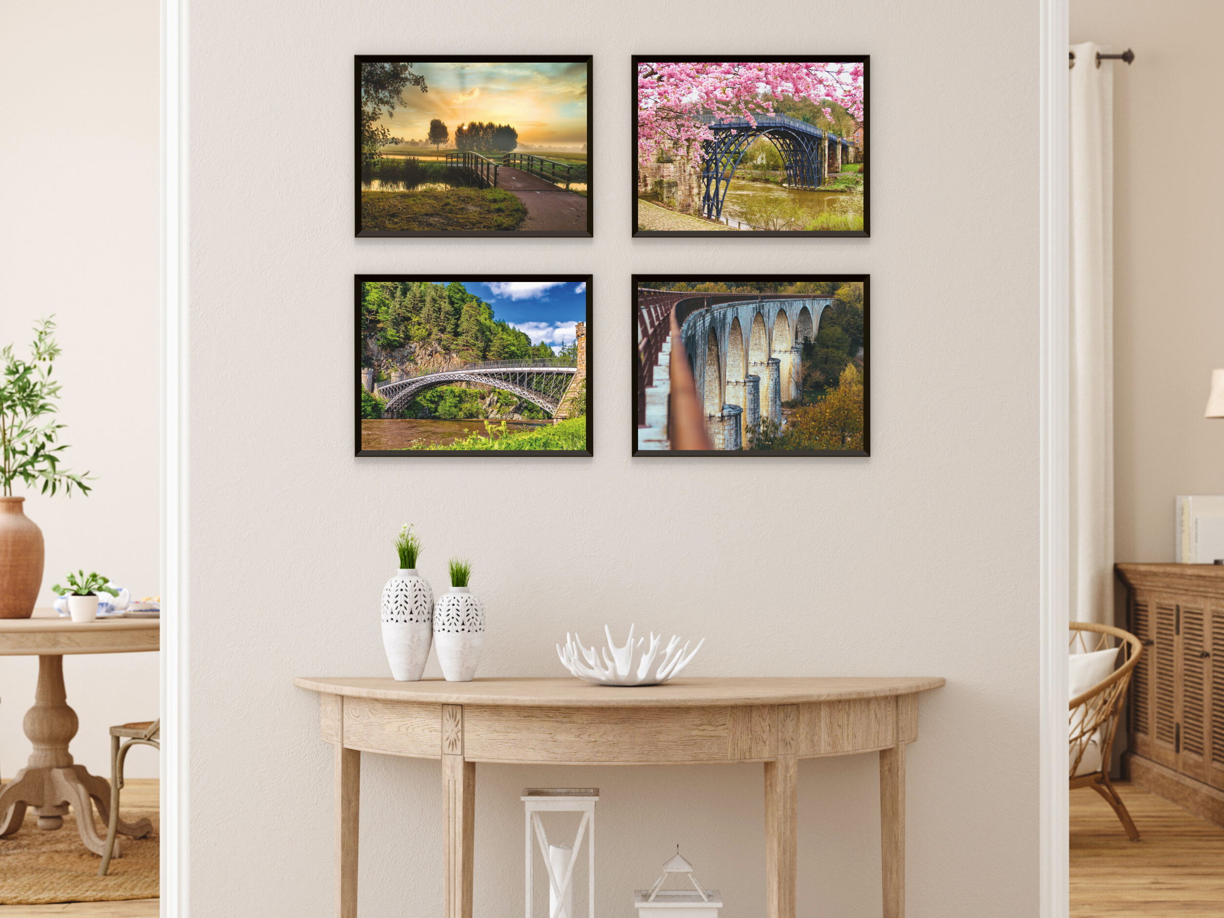 Paysages de ponts - Impressions nature colorées - Ensemble de 4 photographies de magnifiques paysages de ponts , idéal pour décorer vos murs . Apportez la beauté de la nature et de l'architecture dans votre intérieur.