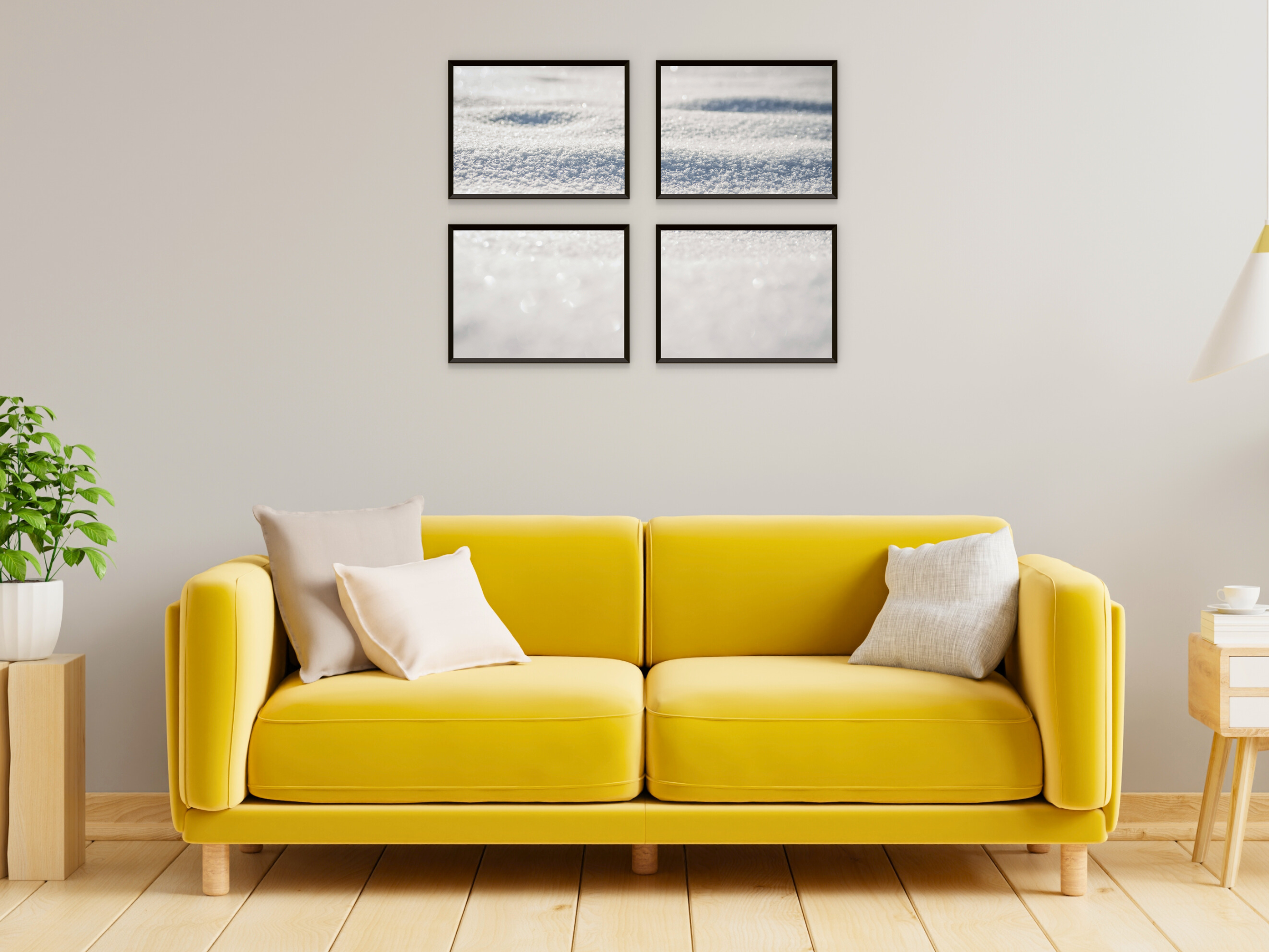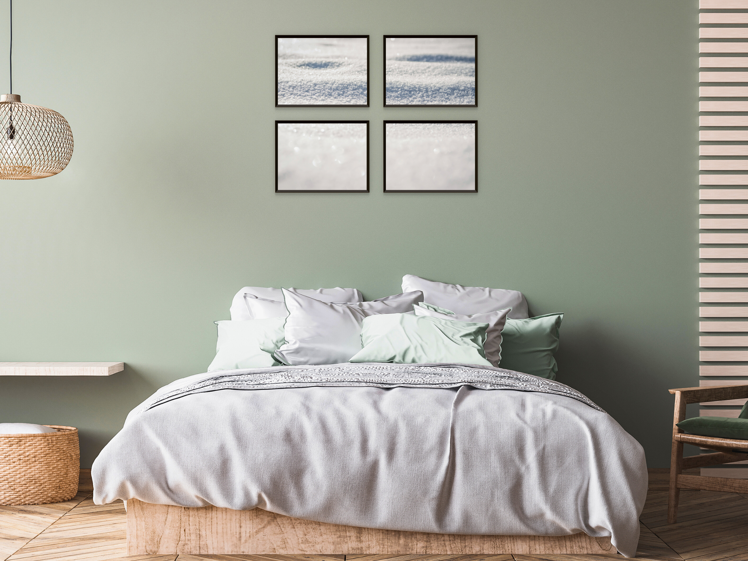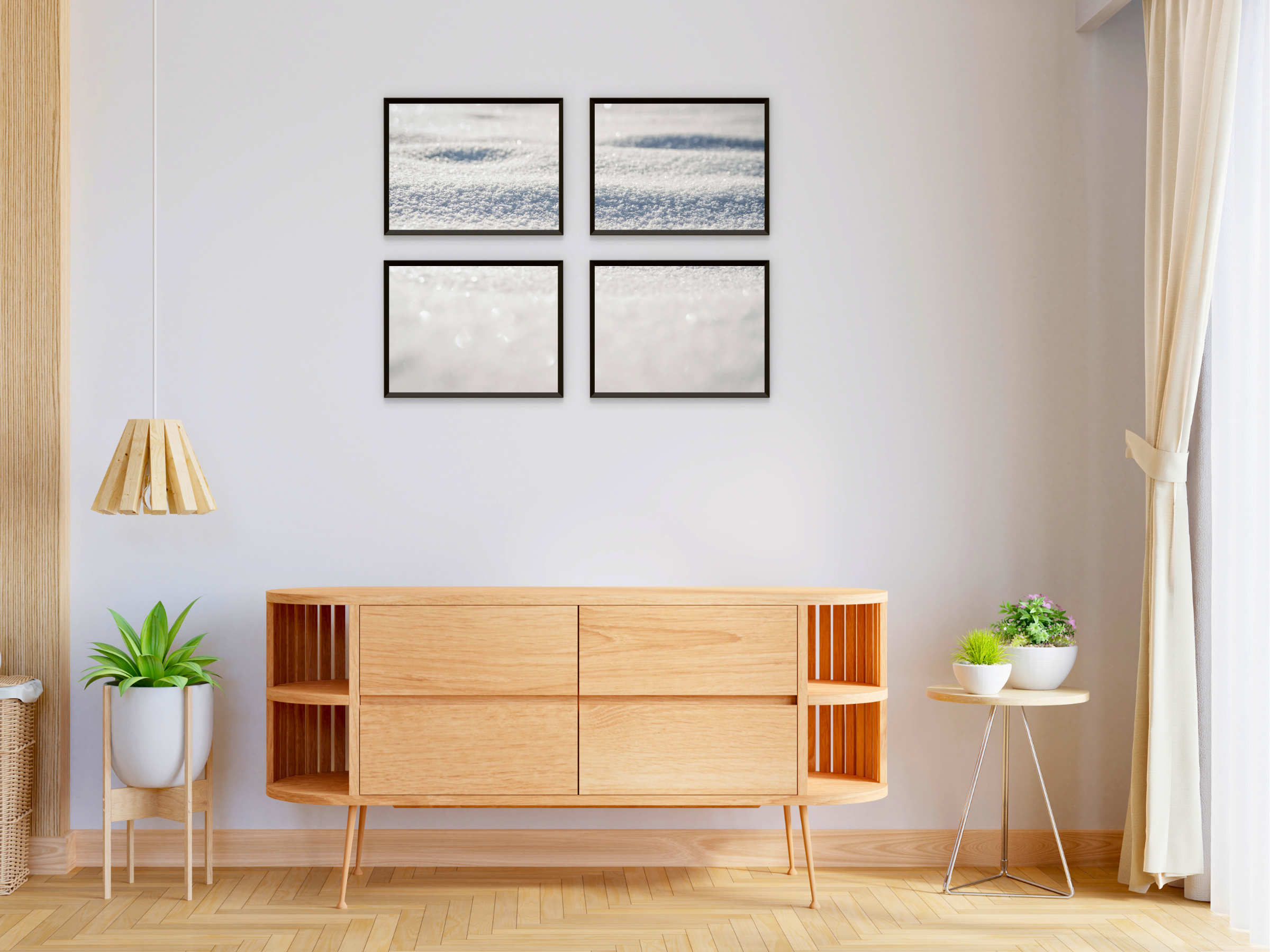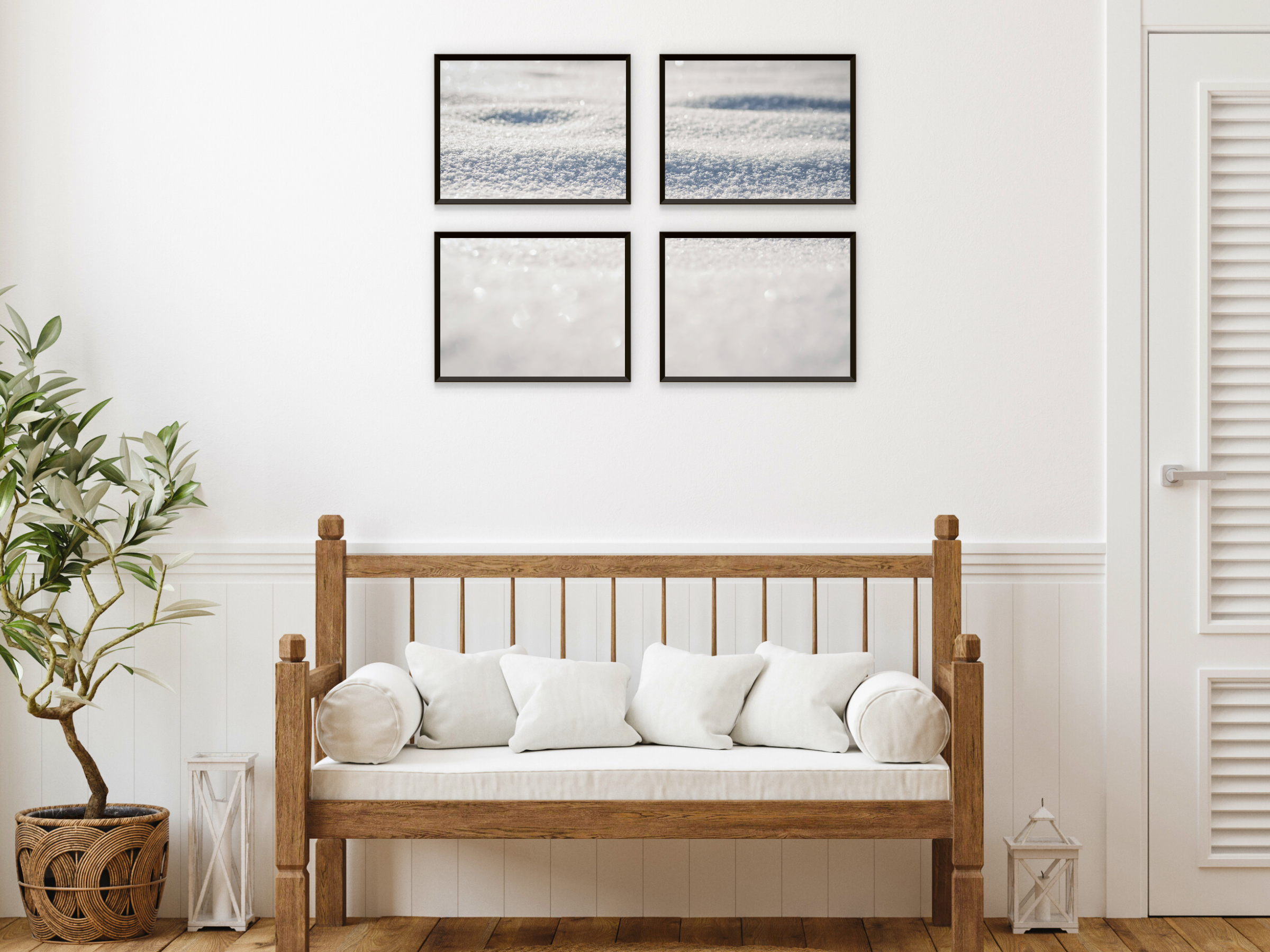 Snow Split Photography - Décoration murale imprimable en 4 parties représentant un paysage hivernal pour une ambiance calme et naturelle dans votre chambre.